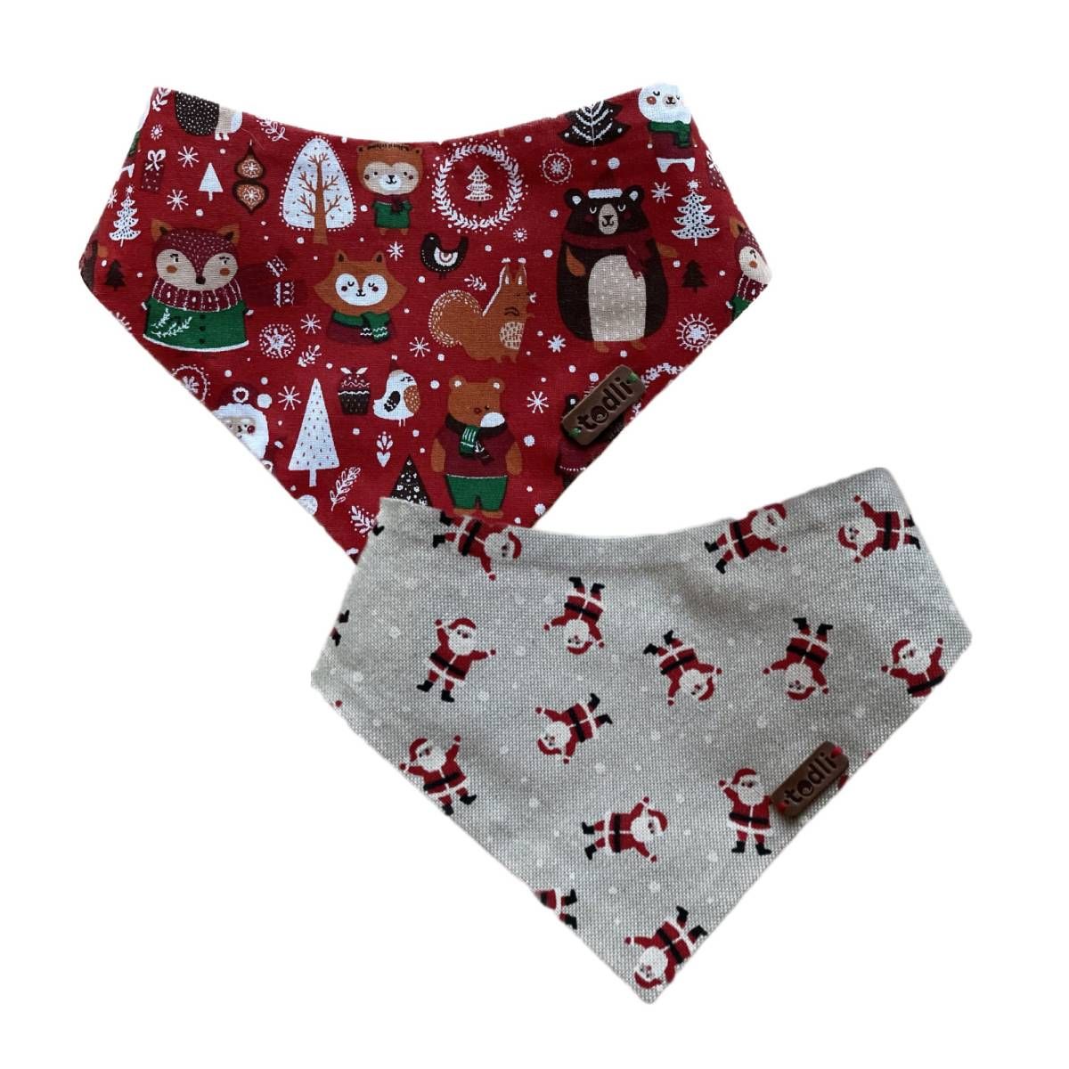 Аксесуар, який додає новорічного настрою. Дуже крутезна двостороння бандана, де обидві сторони виконані із характерним принтом: одна сторона всипана маленькими Дідами Морозами, а інша - вкрита тусньою із звірів. На що обов'язково треба звернути увагу, так це на унікальність лекала, якість пошиття виробу, продуманість застібки та загальне співвідношення кольорів і фурнітури.