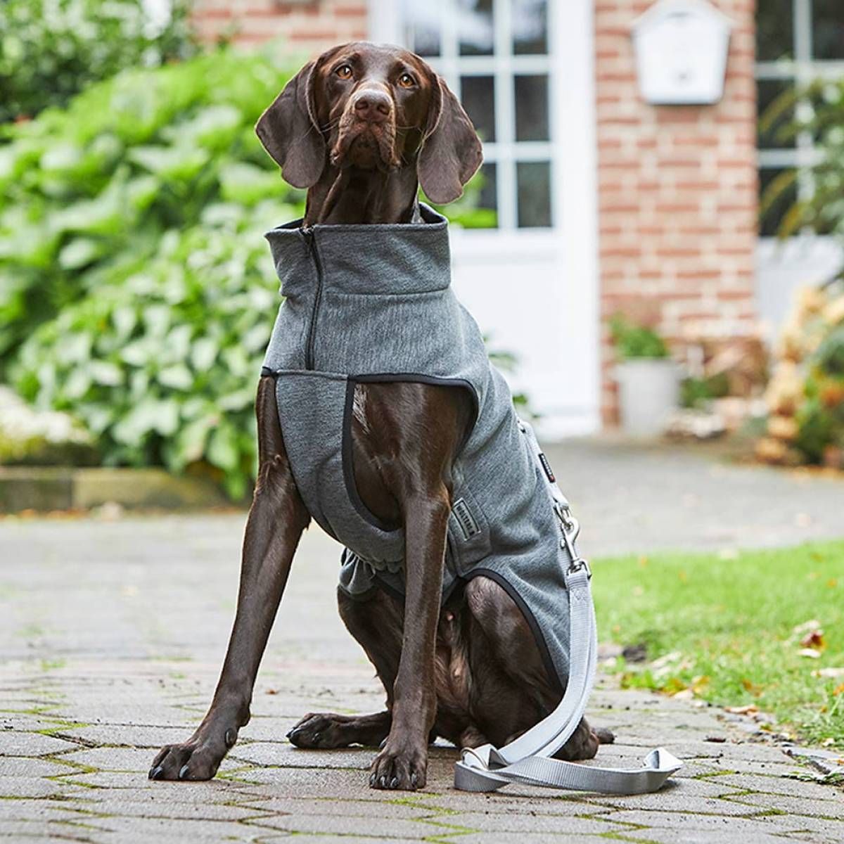 Ця куртка особливо зручна для тих, хто користується повідцями. Завдяки водонепроникній блискавці, вшитій у тканину, собаку можна легко прив'язати до шлейки навіть у куртці.