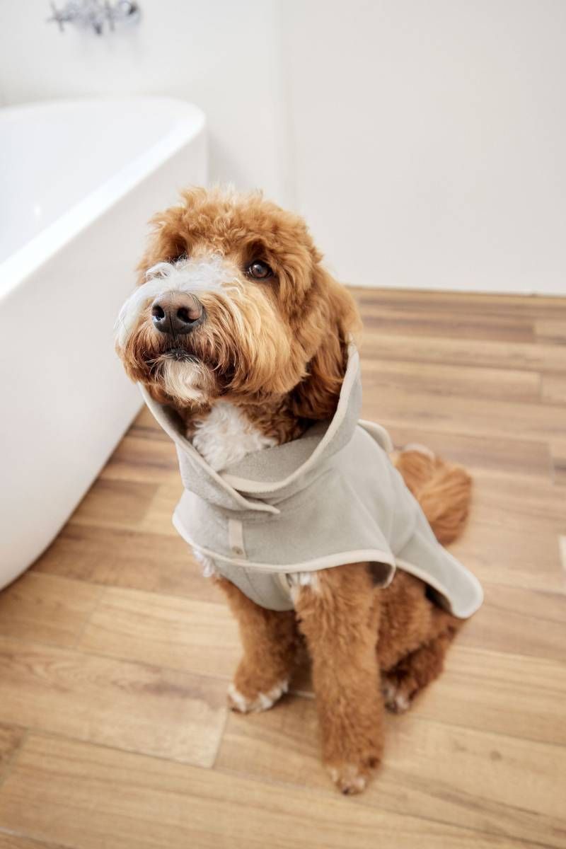 Банні халати для собак Robi акуратно оброблені високоякісною обробкою і можуть бути підвішені за допомогою спеціальної петлі.