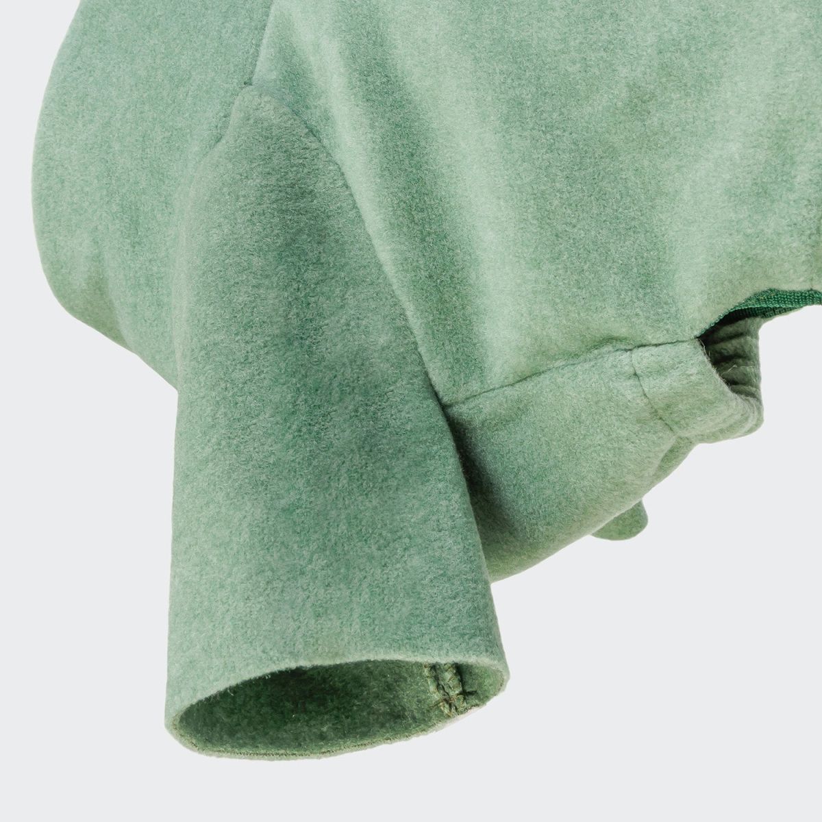 Затишний флісовий джампер для французів у відтінку пилової зелені, який також закриває лапи. Легкий у вдяганні, м’який светр із захистом живота має спеціальний крій для французьких бульдогів та мускулистих метисів.