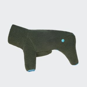 Теплий флісовий светр у тедді-стилі для хортів та уіпетів в оливковому кольорі з повним покриттям лап. Затишний комбінезон із захистом живота має спеціальний крій для вузького, витягнутого тіла.