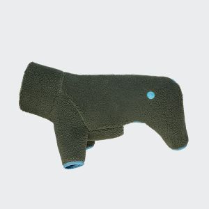 Теплий флісовий светр у тедді-стилі в оливковому кольорі з повним покриттям лап. Затишний комбінезон із захистом живота підходить для маленьких та великих собак вагою до ≈48 кг.