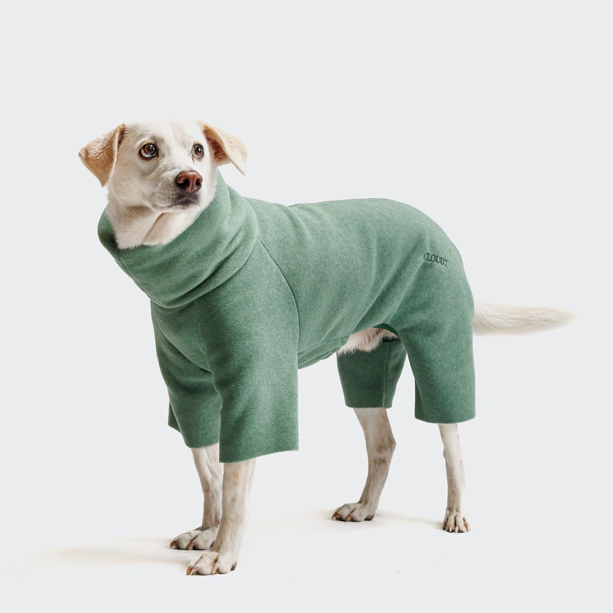 Теплий флісовий джемпер у пилково-зеленому кольорі з повним покриттям лап. М’який та зручний светр із захистом живота підходить для маленьких та великих собак вагою до ≈48 кг.
