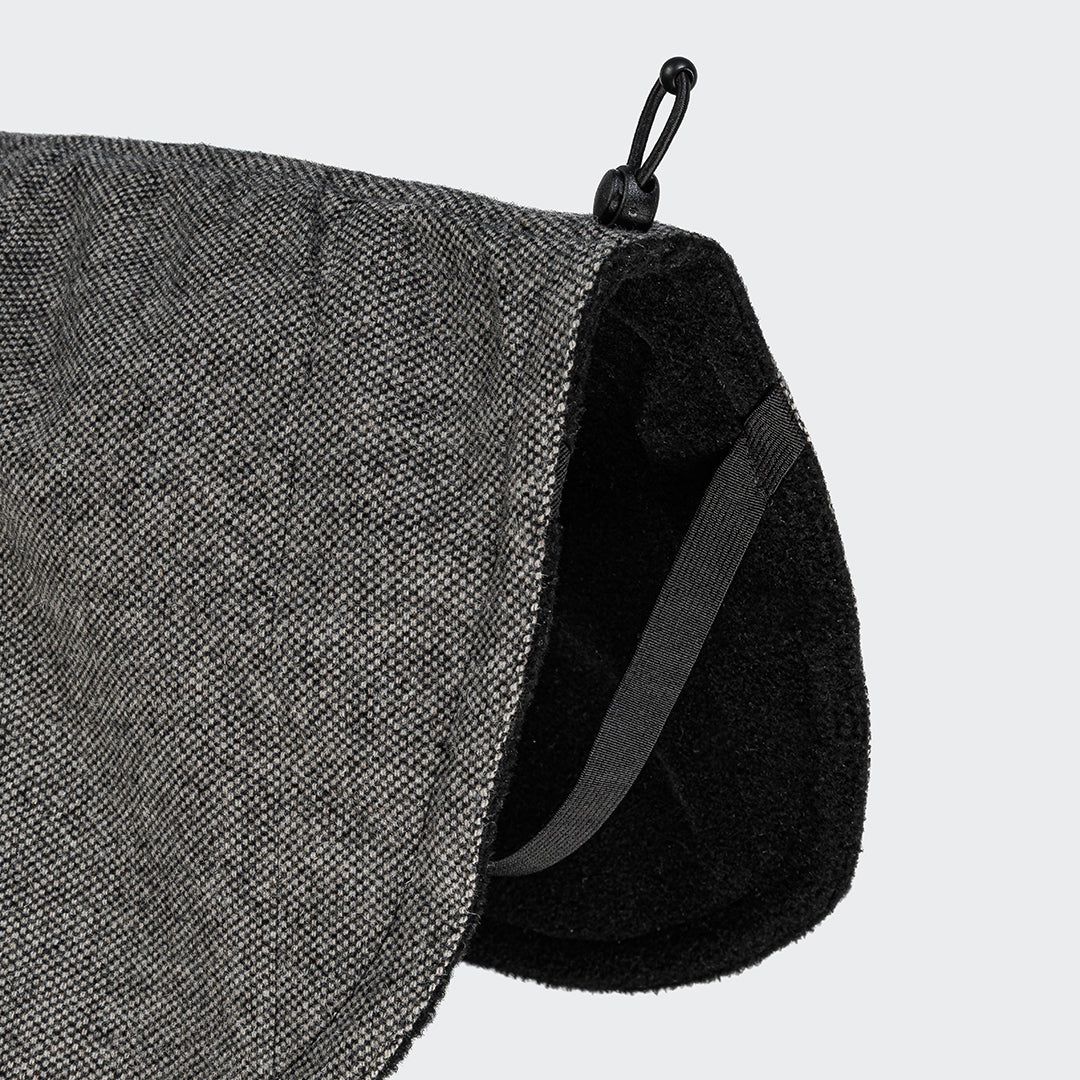 Пальто для хортів зі спеціальним вузьким кроєм, подовженою спинкою та захисною планкою на грудях, а також еластичними петлями для задніх лап для надійної фіксації. Виготовлене з водонепроникної, простотої в догляді італійської твідової тканини чорного кольору.