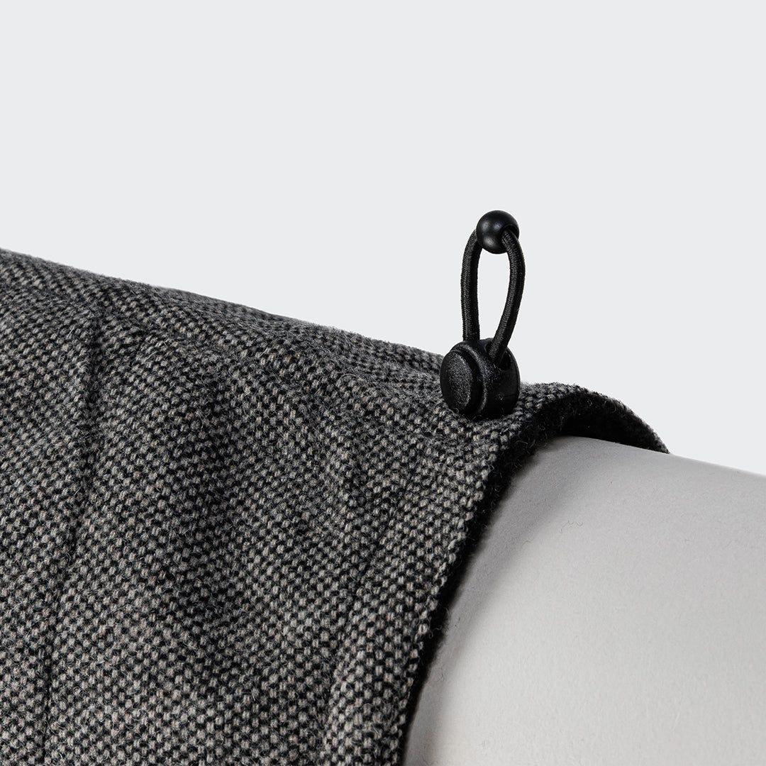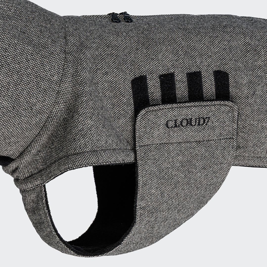 Пальто виготовлене з водонепроникної твідової тканини з PU-покриттям, що надійно захищає від вологи та вітру. Особливість моделі — подовжена двостороння блискавка вздовж спини, що ідеально підходить для собак, які носять шлейку. Новинка — практичний еластичний шнур, який тепер розташований по центру спини зверху, а не навколо корпусу — для точного налаштування довжини пальта у зоні хвоста. Акуратно вишитий логотип CLOUD7 по обидва боки додає преміального вигляду.