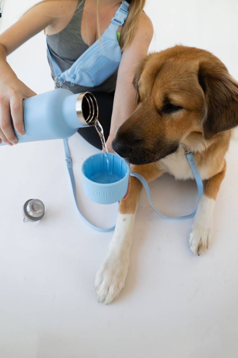 Універсальна пляшка для води, що поєднує зручність для людини та турботу про собаку. Ідеальне рішення для спільних прогулянок, походів або поїздок. Виготовлена з високоякісної нержавної сталі, вона зберігає воду прохолодною понад 12 годин. А коли вашому улюбленцю захочеться пити — просто зніміть силіконову підставку, яка слугує мискою, і налийте воду.