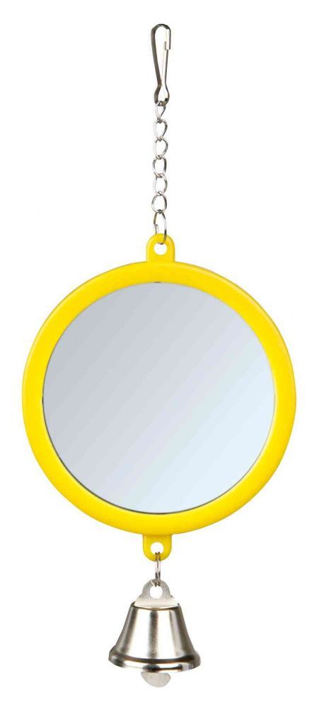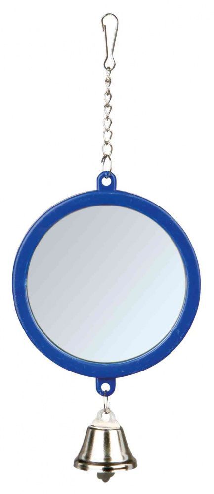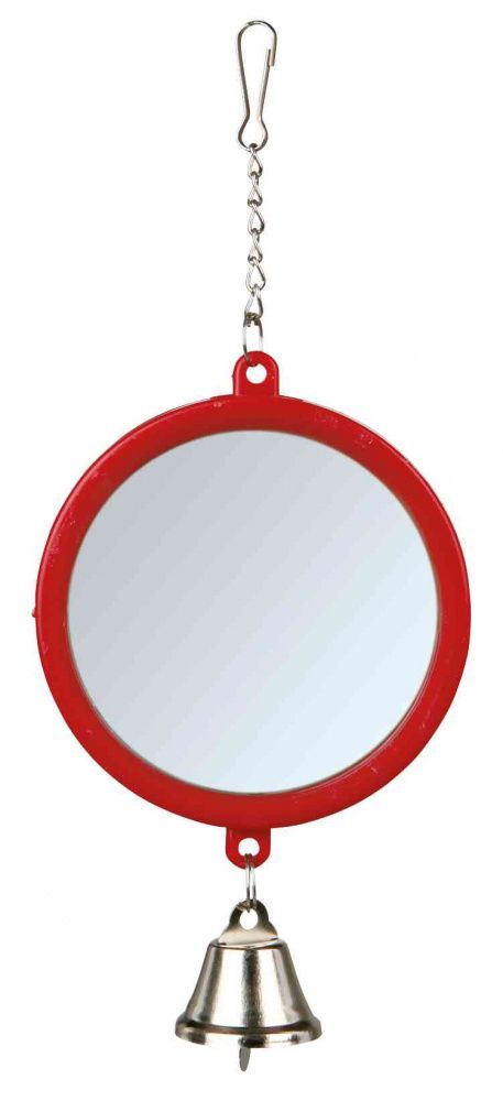 Дзеркало для птахів підвісне Тріксіз пластикової рамкоюз ланцюжком і дзвоникомДіаметр 7см