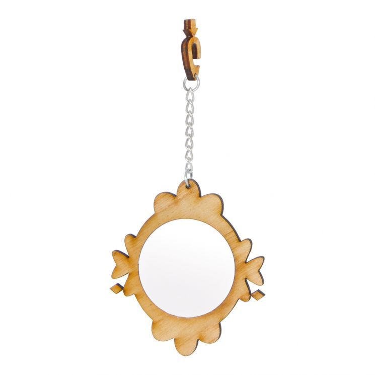 Підвіска в клітку для папуг створена з безпечних для птахів матеріалів.Компактне кругле дзеркальце буде цікавою іграшкою для папуг будь-якого віку та виду.Підвішується в клітці з допомогою металевого гачка.