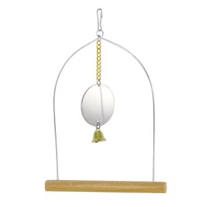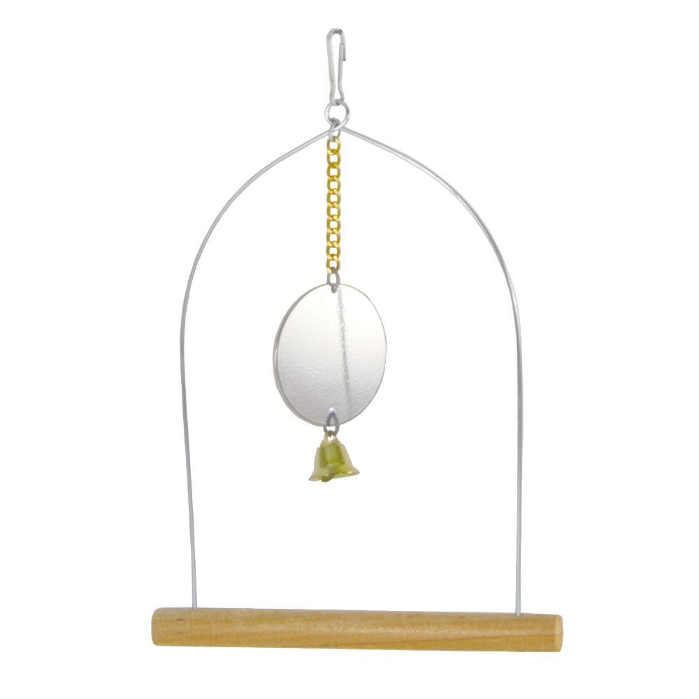 Гойдалки для папуг виготовлені з безпечних для птахів матеріалів.Металева дуга поєднана з жердочкой з натурального дерева завдовжки 17 див. Доповнені дзеркальцем і дзвіночком, гойдалки будуть привабливим атракціоном для папуг.В клітки для птахів варто розміщувати додаткові аксесуари для ігор і розваг Ваших улюбленців. Гойдалки - оптимальний атрибут, який, до того ж, розвиває координацію рухів у птиці і дає можливість активно проводити дозвілля.
