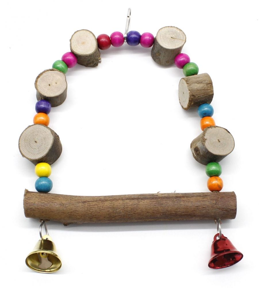 Іграшка для папуг 1523см. Іграшка-гойдалка для птахів з деревяних намистин та жердин має гачок для підвішування до клітини та колочків.Іграшка урізноманітнить дозвілля Вашого улюбленця і допоможе зберегти активність та товариськість.Також за допомогою такої іграшки папуга зможе сточувати дзьоб та кігтики, що дуже важливо для Вашого вихованця.Виготовлена з натуральних матеріалів. Відмінно підійде для амадину, середніх папуг, нерозлучника, корела.