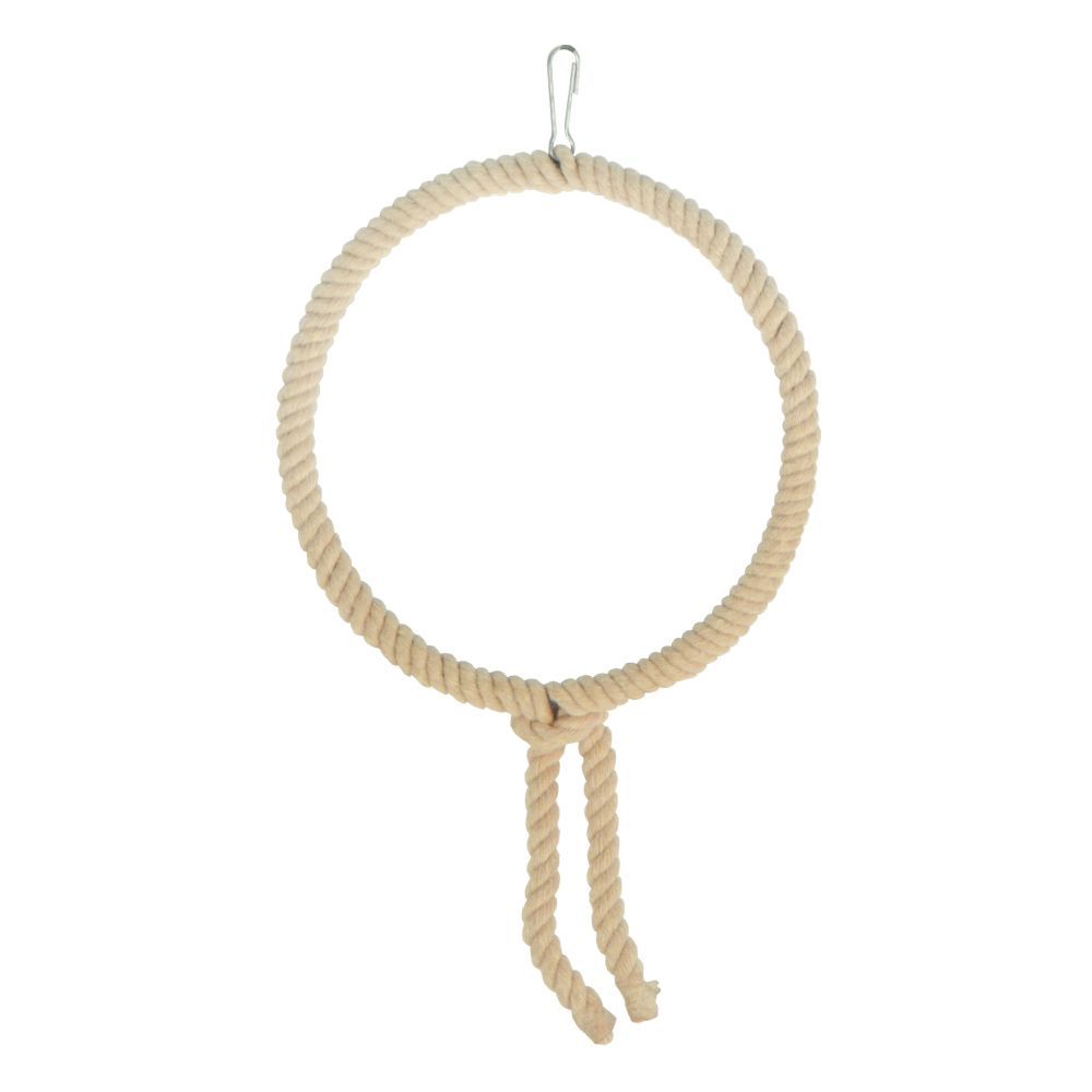 Кільце з мотузки діаметром 10 см - оптимально для ігор і відпочинку хвилястих папуг.Може бути розміщено всередині клітини і за її межами.Підвішується за допомогою металевого гачка, який надійно і рухливо фіксує конструкцію.