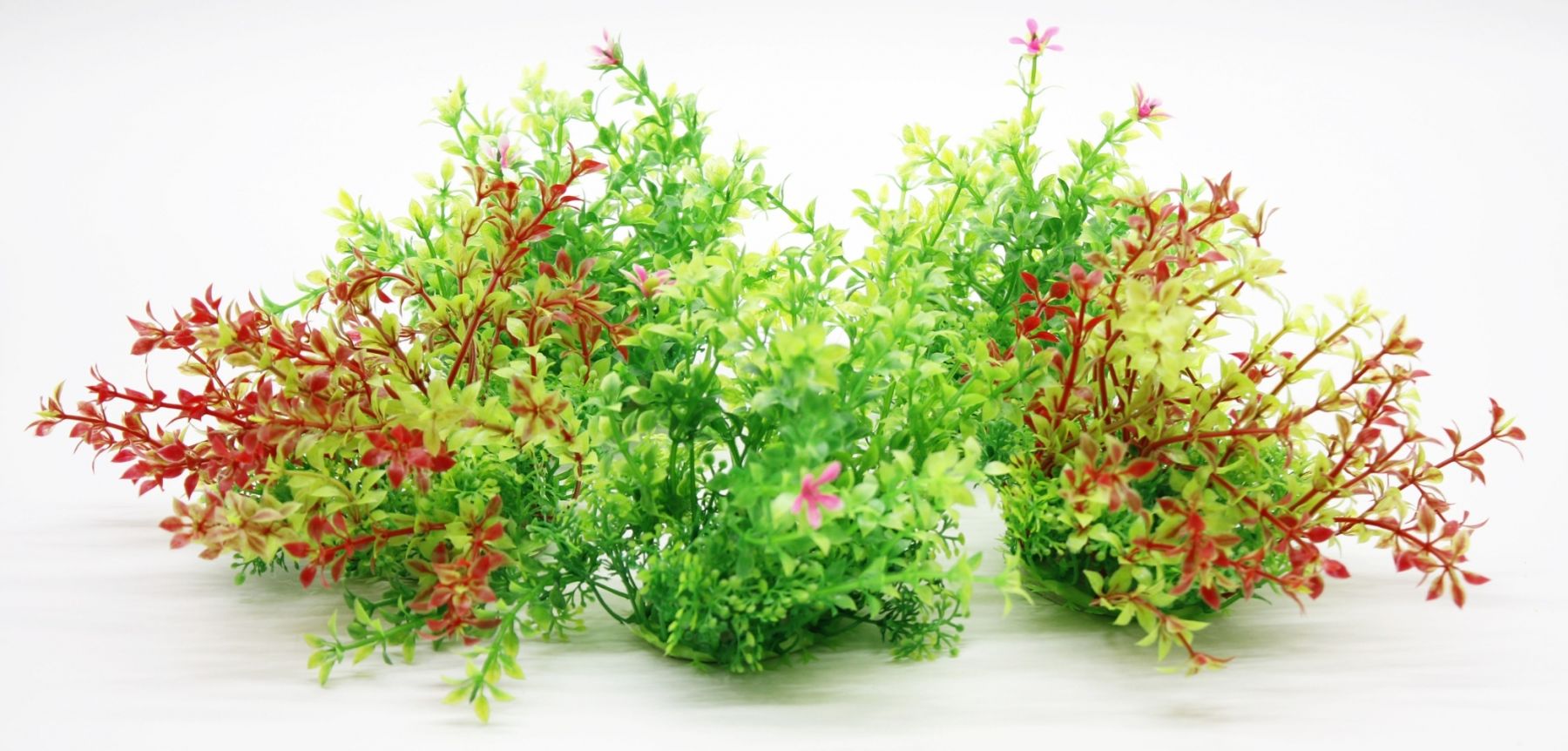 Штучні акваріумні рослини за якістю виконання та зовнішнім виглядом не поступаються натуральним. Виконані з якісного матеріалу, не схильні до гниття, легко відмиваються у разі потреби, при мінімальному догляді зберігають свій зовнішній вигляд протягом 5-10 років.Пластикові рослини не потребують правильної посадки, ґрунту (ґрунт в акваріумі використовується як елемент акваріумного декору), освітленні, добривах, у той час як жива рослинність при недотриманні звичних параметрів середовища - температури, хімічного складу води, мінералів у ґрунті, інтенсивності освітлення - можуть захворіти та загинути.Синтетичні рослини ідеально підходять до створення підводного пейзажу в акваріумі. Ви можете виставити рослинну композицію, будучи впевненими, що жодна з рослин не розростеться чи не загине, порушивши гармонію підводного світу.Використання в акваріумі пластикових рослин полегшує застосування акваріумної хімії, ліків у разі, якщо у вас хворіють рибки. При цьому ви не ризикуєте занапастити рослини.