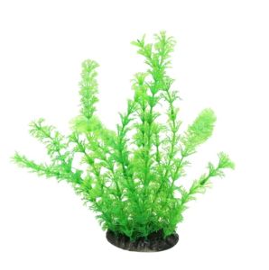 Штучні акваріумні рослини за якістю виконання та зовнішнім виглядом не поступаються натуральним.Виконані з якісного матеріалу, не схильні до гниття, легко відмиваються у разі потреби, при мінімальному догляді зберігають свій зовнішній вигляд протягом 5-10 років.Пластикові рослини не потребують правильної посадки, ґрунту (ґрунт в акваріумі використовується як елемент акваріумного декору), освітленні, добривах, у той час як жива рослинність при недотриманні звичних параметрів середовища - температури, хімічного складу води, мінералів у ґрунті, інтенсивності освітлення - можуть захворіти та загинути.Синтетичні рослини ідеально підходять до створення підводного пейзажу в акваріумі.Ви можете виставити рослинну композицію, будучи впевненими, що жодна з рослин не розростеться чи не загине, порушивши гармонію підводного світу.Використання в акваріумі пластикових рослин полегшує застосування акваріумної хімії, ліків у разі, якщо у вас хворіють рибки.При цьому ви не ризикуєте занапастити рослини.
