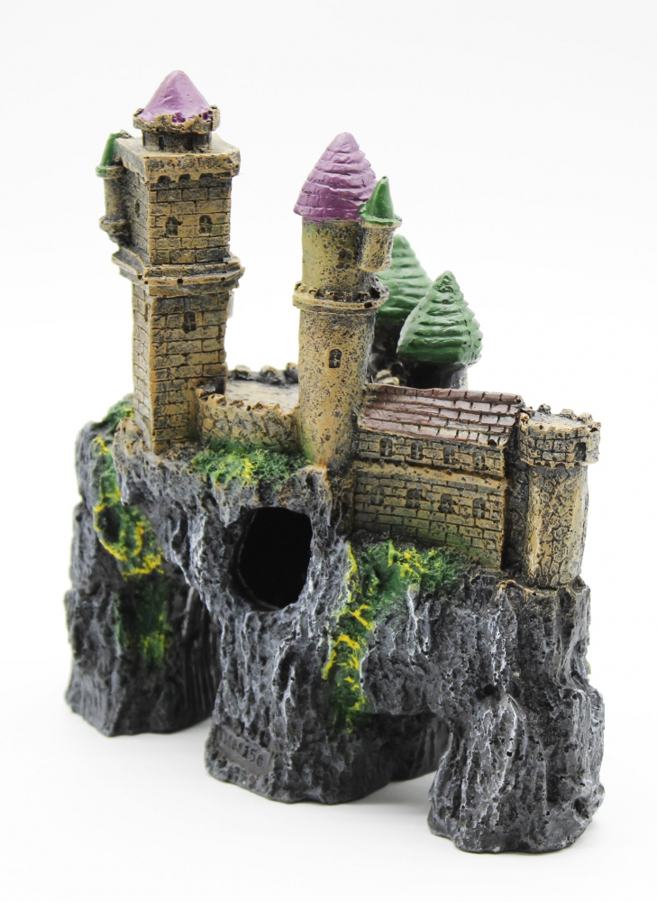 Замок 17819 см декоративна прикраса для акваріумів і тераріумів, виготовлена з високоякісної кераміки. Має вигляд середньовічного замку з реалістичними деталями, що додає акваріуму виразності та створює атмосферу казковості.У нижній частині замку є отвір, схожий на вхід до печери при зануренні декорація самостійно заповнюється водою і не спливає. Кераміка безпечна для водних мешканців, не змінює склад води та легко очищується.
