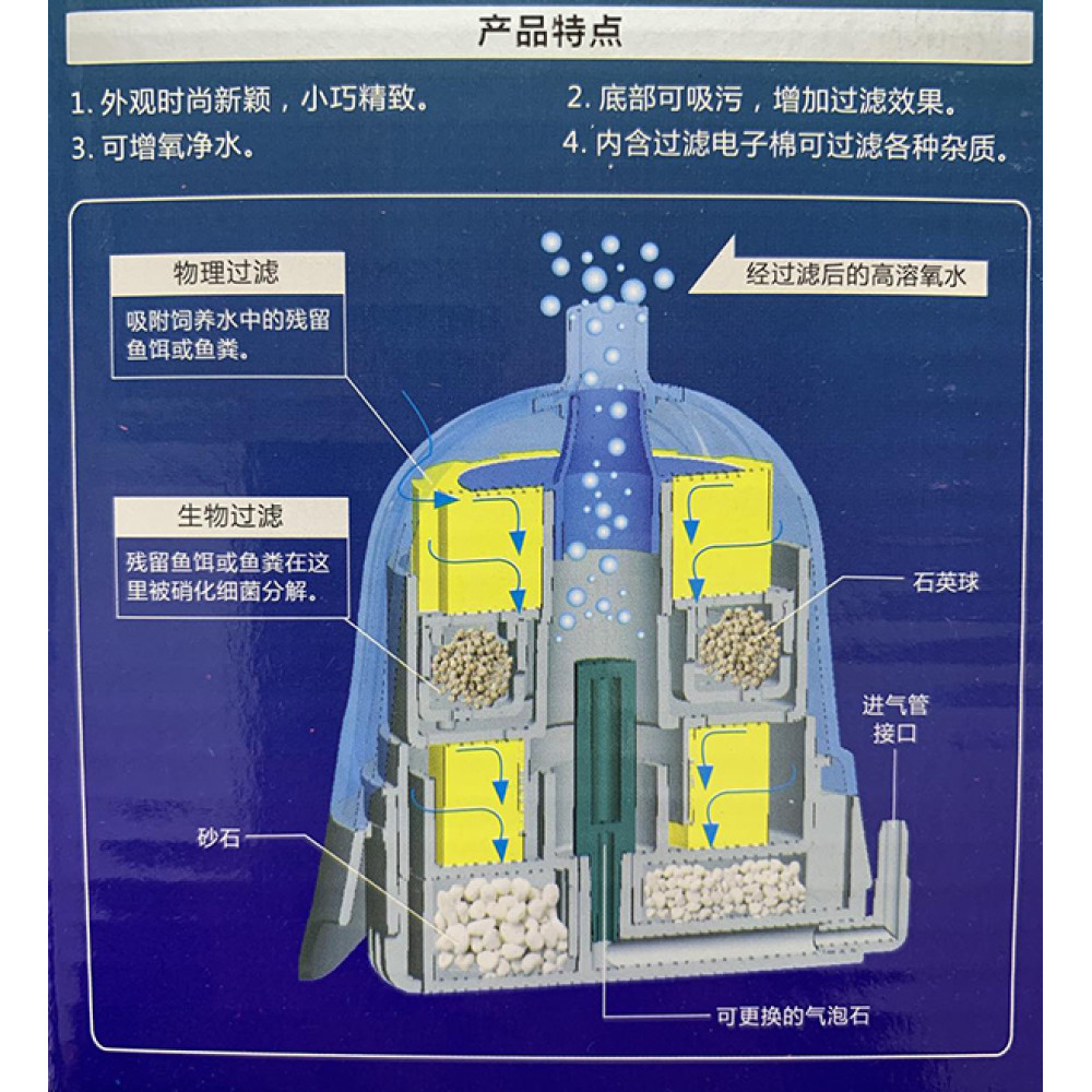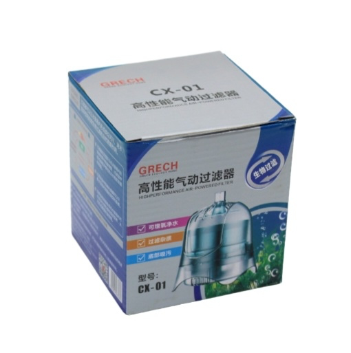 Особливість аерліфтних фільтрів у тому, що процес очищення води здійснюється не за допомогою насоса, а за допомогою компресора.Ця модель підійде для акваріумів до 35-40 літрових акваріумів і використовується тільки з повітряним компресором.Аерліфтні фільтри ідеально підійдуть для креветника або акваріума з мальками.Якщо порівнювати його із звичайним фільтром-помпою, то головною перевагою аерліфтного фільтра є великий (порівняно з іншими фільтрами розрахованими на такі ж акваріуми) обєм фільтруючого матеріалу, що забезпечує хорошу біологічну фільтрацію.Однак по очищенню від механічних забруднень, він поступається фільтр-помпою через маленьку потужність.У акваріумах, у яких встановлений фільтр з мотором, істотно зменшується можливість виживання невеликих мешканців акваріума, оскільки їх може засмоктати всередину. Аерліфтний фільтр, у свою чергу, є для них безпечним.Габарити: 9,2 х10, 8 смКонструкція: Має 2 мочалки, а також відсіки для кераміки та біонаповнювачів, також усередині фільтра встановлений розпилювач для повітря. Проста конструкція дозволяє легко розібрати і обслужити фільтр. У відсіки для наповнювачів можна додати фільтруючих елементів на власний розсуд, за рахунок потужного ейрліфтного ефекту добре насичує воду повітрям, на обємах до 40 л не потрібно встановлення розпилювачів в акваріум. Цей фільтр може не лише поглинати домішки для очищення води, а й додавати кисень до риби.Практичність: корпус всього фільтра виготовлений із прозорого пластику, за яким зручно спостерігати за станом очищення.Матеріал: фільтр містить фільтрувальні матеріали, такі як фільтрувальна вата, вата з активованим вугіллям або біохімічна вата, керамзит.Для роботи даного фільтра необхідний акваріумний компресор з продуктивністю не менше 2,5-3 лхв (у комплект не входить). Продуктивність залежить від компресора, до якого буде підключений аерліфтний фільтр.