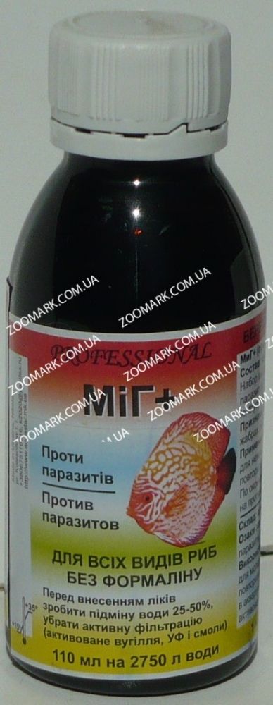 Описание Профессионал Миг Паразитирующие организми в аквариумах далеко не редкое явление. Они служат источником возникновения многих заболеваний. Паразити и бактерии бистро размножаются, поетому при первих проявлениях симптомов, следует незамедлительно начать лечение. Для уничтожения невидимих и опасних организмов, торговая маркаProfessionalразработала средство против паразитов. Тщательний процесс и новие технологии производства, позволили получить препарат с обширним диапазоном воздействия. Стоимость данного средства настолько доступна, что не отразится на бюджете любителей аквариумов. Продатся Профессионал в свободной форме и отпускается в любом количестве. Лекарство Миг используют в таких случаях:при гниении плавниковпри появлении на теле риб и их жабрах образований в виде ватних, нитевидних и точечних формпри болезнях, спровоцированних грибками и бактериямидля уничтожения внешних паразитов и вторичних бактериальних.Миг состоит из нескольких лекарственних ингредиентов, которие обладают большой еффективностью при лечении риб заражнних паразитами и грибковими инфекциями. В составе отсутствует, часто используемое в лекарствах, вещество формалин. Препарат не имеет ограничений, и используется для всех видов риб обитающих в аквариумах. Побочних реакций или же смертельних исходов не наблюдалось, но для мальков и нежних рибок концентрацию жидкости разбавляют.Продолжительность применения Профессионал Миг зависит от того, насколько висока степень поражения водних обитателей. В общем, длительность обработки не превишает 3 дней. При сильном заражении можно внести повторную дозировку. Важним моментом, которий необходимо учитивать перед использованием лекарства, является добавление новой води и отключение фильтров. Завершальним етапом лікування є зміна рідини і е фільтрація, що проводиться протягом доби.