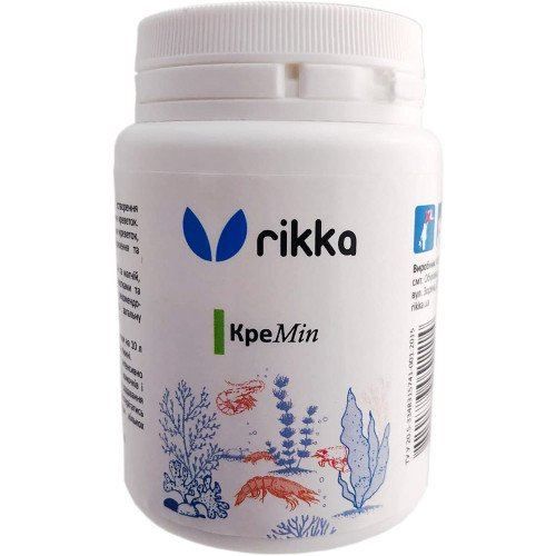Rikka КреМіп мінеральний комплекс для акваріумів з креветками і раками.Суміш у вигляді порошку, в складі корисні мінерали, кальцій і магній, які забезпечують правильні умови для утримання креветок. Дуже важливо підбирати не тільки спеціалізований корм для певного виду риб або креветок, а й корисні добавки, які забезпечують правильний ріст вихованця.Препарат Rikka КреМіп сприяє здоровому росту креветок, підсилює міцність екзоскелета, полегшує линьку, так само підсилює натуральне забарвлення ракоподібних, завдяки біоактивним зєднанням кальцію і магнію. По мимо цього, покращує якість акваріумний води.Спосіб застосування2 ложки на 10 л акваріумний води. Перед використанням, насипте в окрему ємність необхідну кількість порошку, додайте 1 л води і ретельно перемішайте, щоб не утворилося грудочок, потім вилийте суміш в акваріум. Після процедури можете спостерігати невелике помутніння води, воно зникне через кілька годин.Додавати мінерали в акваріум можна 1 раз в два тижні. Під час використання може збільшиться загальна жорсткість води на 0.25 dGH. Передозування не викликає ніякого негативного впливу на креветок. Всі компоненти легко засвоюються не тільки креветками і раками, а й равликами.ХарактеристикаВиробник: Rikka. Вага: 40 г.