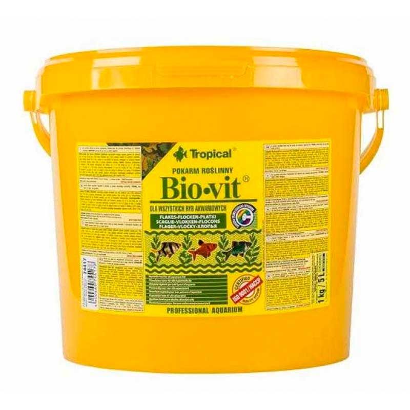 Tropical Bio - vit-це корм у формі пластівців, багатий рослинними інгредієнтами (включаючи кропиву, шпинат, зародки пшениці і спіруліну), які входять в щоденний раціон травоїдних акваріумних риб і доповнюють раціон всеїдних риб. Він незамінний в широко використовуваних багатовидових резервуарах. Завдяки оптимально збалансованому складу і додаванню необхідних вітамінів і мікроелементів, він забезпечує рибі правильний ріст і розвиток. Додавання стабілізованого вітаміну C підвищує стійкість риби до хвороб. Хлорофіл (який надходить з різних джерел, включаючи кропиву та шпинат) та високий вміст клітковини обмежують ризик запорів, а додавання цеоліту сприяє здоровому травному тракту та виведенню токсинів з організму риби.Рекомендація по годівлі для Tropical Bio-vit:Годуйте золотих рибок кілька разів на день невеликими порціями.Повний корм для декоративних риб. Інгредієнти: похідні рослинного походження (зародки пшениці не менше 5, кропива не менше 2,5, борошно зі шпинату не менше 1,5), злаки, екстракти рослинного білка, водорості (Spirulina platensis не менше 0,5), Риба і похідні риби, молюски і ракоподібні, похідні мяса і тварин, дріжджі, жири і масла, мінерали (в тому числі 1 цеоліт). Добавки (на кг): вітаміни, Провітаміни та речовини з хімічно чітко визначеною подібною дією: Віт. 22 500 МО, Віт. D3 1 350 МО, Віт. Е 90 мг, віт. З 340 мг. Сполуки мікроелементів: E1 (Fe) 27,2 мг, E6 (Zn) 7,5 мг, E5 (Mn) 5,62 мг, E4 (Cu) 1,35 мг, E2 (I) 0,16 мг, E8 (Se) 0,16 мг, E7 (Пт ) 0,037 мг.Лецитин. Барвник. Антиоксидант.Аналітичні компоненти: сирий білок 43,0, сирі жири і жири 11,0, сирі волокна 2,0, вологість 6,0