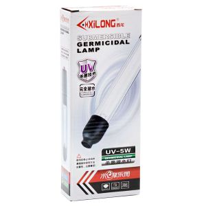 Стерилізатор XILONG UV-5W занурювальний ультрафіолетовий стерилізатор для акваріума.Використовується для знищення бактерій, вірусів, спор та водоростей в акваріумі.Пристрій виконаний із високоякісних матеріалів.Колба виготовлена із міцного кварцового скла, що забезпечує високу передачу ультрафіолетових променів.Має повністю водонепроникну конструкцію.Встановлюється стерилізатор безпосередньо у воді, для цього передбачено дві надійні присоски.Занурювальний акваріумний стерилізатор може встановлюватися прямо в акваріумі у відкритому вигляді порівняно із звичайними стаціонарними стерилізаторами.Він дуже компактний і не займає багато місця в акваріумі.Зручний для швидкої боротьби з водоростями.Для ефективної роботи стерилізатор повинен добре омиватися течією фільтра або розпилювача.Для зручної експлуатації, блок живлення пристрою оснастили кнопкою увімкнення та вимикання.Не рекомендується дивитися на лампу під час її роботи, щоб уникнути пошкодження зору.Не рекомендується поміщати стерилізатор у відкритому вигляді в акваріум.Використовуйте будь-який примітивний захист (заслінку) або уникайте прямого контакту акваріумних мешканців з лампою.Цей вид УФ-стерилізаторів використовують для короткочасної обробки. Рекомендований час обробки становить 1-5 годин на день, залежно від обсягу акваріума.Перші дні слід приділити особливу увагу процесу обробки акваріума.У процесі обробки даним стерилізатором, необхідно спостерігати за поведінкою акваріумних мешканців, при неспокійній поведінці їх скоротити час обробки.Відмінним варіантом буде застосування пристрою в САМП і проточному фільтрі.Характеристики XILONG UV-5W:Потужність лампи UVC: 5 ВтТермін служби лампи: 8000 годНапруга: 220 ВДля акваріума: до 200 лДля акваріумів із САМПом, проточним фільтром: до 400 лДовжина кабелю: 1,4 м