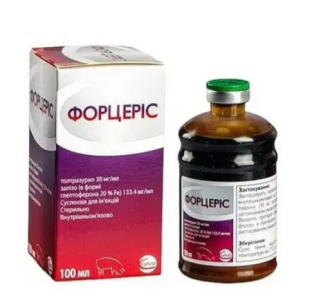 Інєкційний розчин Форцеріс 100мл (Ceva) для свиней комбінований препарат (залізо + толтразурил) для профілактики анемії та кокцидіозу.