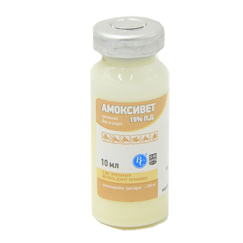 Амоксівет 15 П. Д - інєкційний антибактеріальний препарат 10 мл