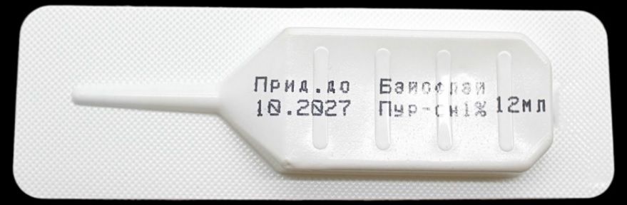 СкладБайофлай Пур-он як діючу речовину в 100 мл розчину містить 1 г цифлутрин (ціано-4 (-флуорен-3-феноксифеніл) метил-3 (2,2-діхлороетеніл) -2,2-диметил), а також допоміжні компоненти 2-октилдодеканол, Cолвессо 200 і рідкий парафін.ОписПрепарат від комах для ВРХ. За зовнішнім виглядом являє собою олійну прозору рідину жовто-коричневого кольору.Фармакологічні властивостіБайофлай Пур-он володіє контактною інсектицидною і репелентною дією відносно двокрилих комах: зоофільних мух, включаючиHaematobia irritans, Haematobia stimulans, Musca autumnalis, Stomoxys calcitrans, гедзів (Tabanidae), оводів (Hypodermatidae), комарів (Culicidae) і мошок (Simuliidae). Цифлутрин, що входить до складу препарату, належить до групи синтетичних піретроїдів, механізм дії, яких полягає в блокуванні передачі нервових імпульсів, що викликає порушення координації рухів, параліч і загибель комах. Після нанесення на шкіру препарат розподіляється по поверхні тіла, в незначній мірі ресорбується шкірою, що забезпечує його тривалу інсектицидну і репелентну дію. Байофлай Пур-он за ступенем впливу на організм відноситьсядо малонебезпечних речовин (4 клас небезпеки по ГОСТ 12.1.007-76): ЛД50 при пероральному введенні і нашкірному нанесенні білим мишам становить більше 5000 мгкг маси тварини. У рекомендованій дозі, не виявляє резорбтивно-токсичну, ембріотоксичну, тератогенну, мутагенну, імунотоксичну і місцевоподразнюючу дії на шкіру. При попаданні в очі викликає слабке подразнення. Токсичний для риб і бджіл.Показання до використанняПризначають для захисту великої рогатої худоби від нападів мух, гедзів, вошей, волосоїдів та інших комах. Для профілактики гіподерматоза, телязіозу і інфекційних захворювань великої рогатої худоби, переносниками яких є мухи.Вид тварин:Корови, кози, вівці, коні.Спосіб застосування та дозиПрепарат застосовують для обробки великої рогатої худоби в пасовищний період з метою знищення зоофільних мух, гедзів, оводів, комарів, мошок і захисту, тварин від їх нападу. Захисна дія препарату триває не менше 28 днів після одноразової обробки.Байофлай Пур-он за допомогою дозуючого пристрою наносять на шкіру спини вздовж хребта від холки до хрестця, в дозі 10 мл на тварину. Обробку тварин проводять в пасовищний період один раз в 4 - 6 тижнів, в залежності від чисельності комах. Дійних корів слід обробляти відразу після доїння.ПротипоказанняПрепарат не слід застосовувати іншим видам тварин. Не призначати великій рогатій худобі масою менше 300 кг. Не рекомендується наносити на вологу, ушкоджену і забруднену шкіру.ЗастереженняПродукцію тваринництва після застосування препарату дозволяється використовувати в харчових цілях без обмежень. При роботі з препаратом Байофлай Пур-он слід дотримуватися загальних правил особистої гігієни і техніки безпеки, передбачені при роботі з лікарськими засобами.Обробку тварин слід проводити з використанням спецодягу (халат, головний убір, гумові чоботи, гігієнічні рукавички). Під час роботи з препаратом забороняється палити, пити і приймати їжу. Після закінчення роботи слід ретельно вимити руки теплою водою з милом.При випадковому потраплянні препарату на шкіру або в очі його слід негайно змити струменем води, при попаданні всередину звернутися до медичного лікаря. Забороняється використання тари з-під лікарського засобу для побутових цілей.Умови зберіганняУ сухому, захищеному від