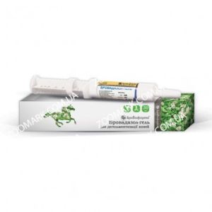 Склад1 мл препарату містить:фенбендазол 150 мгОписГель білого кольору, однорідний.Фармакологічні властивостіФенбендазол належить до групи бензимідазолів. Механізм дії повязаний з порушенням енергетичного обміну, руйнуванням мікроканальців травних клітин та появою нейротоксичного ефекту у гельмінтів. Згубно діє на личинки нематод різних стадій розвитку та порушує цілісність оболонок яєць гельмінтів. Після цього при потраплянні у навколишнє середовище вони не спроможні далі розвиватися.ПоказанняЛікування та профілактикаконейза інвазійних захворювань, що спричинені такими збудниками нематодозів: Parascaris equorum, Охуuris equi, Strongylidae tribus, Cyathostomidae tribus, Strongyloides westeri, Dictyocaulus arnfieldi, Раrafilaria multipapillosa, Оnchоcerca spp. та личинками шлунково-кишкового овода Gastrophilus sрр.ПротипоказанняНе встановлені.Спосіб застосування та дозиПрепарат вводять тваринам на корінь язика за допомогою шприца-туби одноразово.Доза становить 1 мл на 20 кг маси тіла.При інвазіях, спричинених личинками нематод Trichostrongylus ахеі та личинками шлунково-кишкового овода Gasterophilus sрр., препарат дають повторно через добу.Профілактичну дегельмінтизацію дорослих коней рекомендується проводити кожні 3-4 місяці.ЗастереженняПісля останнього застосування препарату забій тварин на мясо дозволяється через 14 діб. Мясо, отримане раніше вказаного терміну, використовують для годування мясоїдних тварин або виготовлення мясо-кісткового борошна залежно від висновку лікаря ветеринарної медицини.Умови зберіганняУ сухому, темному місці за температури від +1 до +20 С.Термін придатності2 роки.
