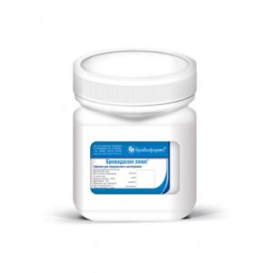 Склад1 г препарату містить:піперазину адипінат 250 мгфенбендазол 30 мгОписПорошок білого кольору, нелеткий, негігроскопічний, без запаху, не розчиняється у воді.Фармакологічні властивостіФенбендазол належить до групи бензимідазолів. Руйнує мікроканальці травних клітин і викликає нейротоксичний ефект у гельмінтів. Згубно діє на личинки різних стадій та порушує цілісність оболонок яєць гельмінтів, після чого вони не здатні далі розвиватися.При пероральному застосуванні максимальна концентрація фенбендазолу в плазмі крові досягається через 0,5-7 годин. Він слабко звязується з білками плазми, трансформується в неактивні метаболіти шляхом декарбоксилювання. Період напіввиведення становить 2,8-9 годин. Більшість речовини виводиться у незміненому вигляді та у вигляді метаболітів з калом, близько 1 з сечею. Резорбований препарат накопичується переважно в печінці та жировій тканині. Близько 40 препарату, що надходить з жовчю в просвіт тонкого кишечнику, реабсорбується, що подовжує його контакт з кишковими паразитами. В організмі перетворюється на фенбендазол і оксфендазол, а також на інші метаболіти.Піперазин синтетичний антигельмінтний препарат вузького спектру дії, який паралізує мязовий апарат гельмінтів. До нього сприйнятливі лише деякі нематоди, а найбільш чутливі аскариди та гострики. Піперазин не дає високих концентрацій в тканинах організму, діє виключно в просвіті кишечнику і не вбиває паразитів, а лише паралізує їхню мускулатуру. Це дозволяє уникнути небезпеки всмоктування токсичних продуктів розпаду гельмінтів.Піперазин проникає через плацентарний барєр і потрапляє у молоко тварини. Метаболізується він у печінці з утворенням неактивних метаболітів. Виводиться з організму нирками, повне виведення метаболітів відбувається протягом 24 годин, при печінковій та нирковій недостатності цей процес може тривати довше.Комбінація фенбендазолу та піперазину адипінату посилює дію препарату проти збудників родини Ascaridae.ПоказанняЛікування та профілактика тварин за гельмінтозів:свині ШКТ, спричинених статевозрілими нематодами та личинками 4 стадії Ascaris suum, Oesophagostomum dentatum, статевозрілими Strongyloides ransomi, Trichuris suis, Hyostrongylus rubidus, Ollulanus sрр., Physocephalus scxalatus та легеневими Metastrongylus spp.коні ШКТ, спричинених нематодами Parascaris equorum, Oxyuris equi, Strongylidae tribus, Cyathostomidae tribus, Strongyloides westeriмясоїдні тварини (собаки, лисиці, песці) ШКТ, спричинених нематодами Ancylostoma caninum, Uncinaria stenocephala, Toxocara canis, Toxascaris leoninae, Strongyloides sрр.кролики спричинених нематодами Passalurus ambiguous, Trichostrongylidae gen., Protostrongylus commatatus, Trichuris leporisптиця (кури, індички, папуги, перепілки, фазани) спричинених нематодами Ascaridia galli, Heterakis gallinarum, Heterakis isolonche, Capillaria anseris, Syngamus trachea, Tetrameres spp.водоплавна птиця (гуси, качки) спричинених нематодами Amidostomum anseris, Heterakis dispar (syn. Ganguloterakis dispar), Syngamus skrjabinomorpha, Tetrameres fissispina, цестодами Hymenolepis sрр., Fimbriaria fasciolaris, трематодами Notocotylus chionis.ПротипоказанняНе призначати свиноматкам за два тижні до опоросу.Не застосовувати з лугами, окиснювачами та йодовмісними препаратамиСпосіб застосування та дозиПеред застосуванням препарат змішують із кормом і дають під час ранкової годівлі індивідуально або груповим методом.Перед груповою дегельмінтизацією кожну партію препарату попередньо випробовують на невеликій кількості тварин, за якими спостерігають протягом доби. За відсутності ускладнень можна п
