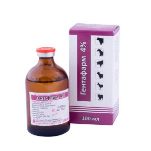 Застосування:Лікування тварин і птиці, хворих на септицемію, артрит, а також при захворюваннях травного каналу (гастрит, ентерит, перитоніт), органів дихання (тонзиліт, трахеїт, пневмонія, бронхіт, бронхопневмонія) та сечостатевої системи (нефрит, пієліт, пієлонефрит, , метрит, мастит), шкіри (дерматит), спричинені чутливими до гентаміцину мікроорганізмами.Дозування:Внутрішньомязово 2 рази на добу з інтервалом 10-12 годин протягом 5-7 діб у наступних дозах:велика рогата худоба - 8 мл препарату на 100 кг маси тілателята, вівці, кози, свині 1 мл препарату на 10 кг маси тілаконі 5 мл препарату на 100 кг маси тіласобаки, коти 0,6 мл препарату на 10 кг маси тілаптах (кури, індики, гуси, качки) 0,2-0,5 мл препарату на головудекоративні гризуни 0,1-0,2 мл препарату на головудекоративні птахи 0,05-0,1 мл препарату на голову.Новонародженим тваринам та птахам протягом перших днів життя дають половину рекомендованої дози.