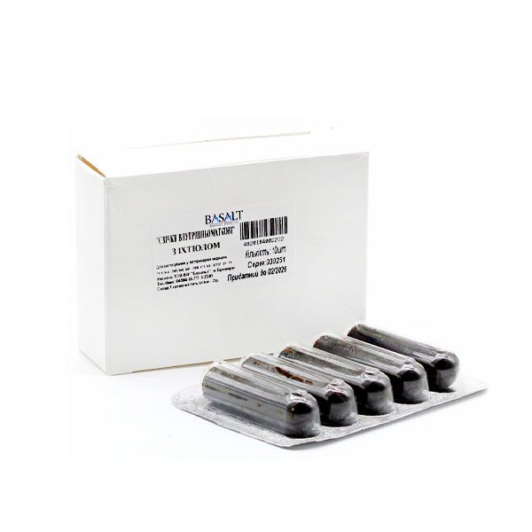 Загальні відомості:свічки містять іхтіол і желатино гліцеринову основу. Препарат являє собою свічки циліндричної форми, темно коричневого кольору та пружної консистенції.Фармакологічна дія: свічки іхтіолові мають широкий спектр антимікробної дії. Подавлюють ріст стрептококів, стафілококів, бруцел, клостридій, мікобактерій і трихомонад. Вони ефективні по відношенню до ряду мікробів, резистентних до антибіотиків та сульфаніламідів.Застосування: свічки використовують для профілактики та лікування запальних процесів різної етіології в матці, шийці матки та у вагіні.Дози:Лікувальні: ВРХ 3 5 свічок вівцям і козам 1 2 свічки.Профілактичні дози: ВРХ 2 4 свічки вівцям і козам 0,5 1.При необхідності введення препарату повторюють в тих самих дозах через 48 годин до повного одужання.Протипоказання: не встановлені.Застереження: забій тварин на мясо дозволяється не раніше, ніж через 2 доби після застосування препарату. Мясо вимушено забитих тварин можна використовувати для годування мясоїдних тварин чи вироблення мясо - пептонного борошна. Молоко, отримане від корів, кіз під час лікування і протягом 24 годин після останнього введення препарату використовують для годівлі тварин (після кипятіння). Використовувати молоко в їжу людям допускається через 48 годин після останнього введення препарату.Форма випуску: блістери по 5 свічок.Умови та термін зберігання: зберігають в темному, сухому місці при температурі від 5 до 20С. термін зберігання 3 роки.