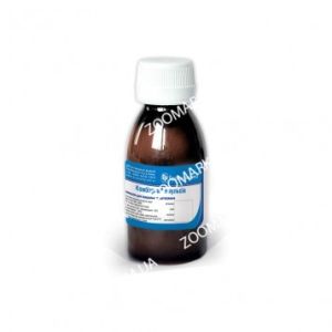 Склад1 мл препарату містить:триклабендазол 50 мгальбендазол 100 мгОписРозчин білого або світло-жовтого кольору, без запаху.Фармакологічні властивостіАнтигельмінтик широкого спектра дії. Ефективний проти преімагінальних і статевозрілих стадій фасціол на ранній стадії інвазії, а також дикроцелій Fasсiola hepatica, F. gigantica, Dicrocoelium lanceatum, нематод ШКТ і легень родин Dictyocaulus, Haemonchus, Ostertagia, Marshallagia, Trichostrongylus, Nematodirus, Cooperia, Oesophagostomum, Bunostomum, Chabertia тощо, статевозрілих цестод родів Moniezia, Trisanosoma.Альбендазол належить до групи бензимідазолів. Гальмує білковий (тубулярний) синтез, у результаті порушується надходження і внутрішньоклітинне транспортування поживних речовин, обмін субстратів речовин (аденозинтрифосфорної кислоти і глюкози), через гальмування фумаратредуктази знижуються мітохондріальні реакції, що спричинює загибель паразитів.Швидко метаболізується в печінці під час первинного проходження. Основний метаболіт альбендазолу сульфоксид ефективний для лікування інфекцій тканин. Він метаболізується у вторинний метаболіт альбендазолу сульфон та інші окислені продукти. Час досягнення Cmax альбендазолу сульфоксиду становить 2-5 годин. Виводиться з жовчю через кишечник у вигляді активного метаболіту альбендазолу сульфоксиду, невелика кількість виводиться з сечею.Триклабендазол взаємодіє з рецепторами тубулозолу, що призводить до порушення дії тубуліну, однак не дає тератогенної дії на тварин. Пригнічує синтез протеїну в фасціолах та може руйнувати окислювальне фосфорилювання, що спричинює загибель фасціол усіх форм розвитку протягом кількох годин після введення препарату.Після потрапляння в організм швидко засвоюється у ШКТ і метаболізується печінкою до сульфоксиду, а в подальшому до триклабендазолу сульфону, які також мають антигельмінтну дію. Виводиться з жовчю та калом, невелика кількість (4-10) з сечею та під час дихання (0,05). Незначна частина накопичується в тканинах організму та молоці.ПоказанняЛікування та профілактикавеликої рогатої худоби, овець, кізза захворювань на фасціольоз та асоціативні гельмінтози (буностомоз, гемонхоз, дикроцеліоз, диктіокаульоз, монієзіоз, тизанієоз, хабертіоз тощо).ПротипоказанняНе призначати самкам у першу третину вагітності, вівцематкам в період парування і в перший місяць після виведення баранів із отари.Спосіб застосування та дозиПеред застосуванням емульсію ретельно збовтують, використовують одноразово з водою в таких дозах на 10 кг маси тіла:велика рогата худоба 1 млвівці, кози 0,75 мл.Лікувально-профілактичну дегельмінтизацію худоби, що пасеться на пасовищах, проводять на початку стійлового періоду.ЗастереженняПісля останнього застосування препарату забій тварин на мясо дозволяється через 20 діб, людям вживати в їжу молоко можна через 4 доби.Умови зберіганняУ сухому, темному, недоступному для дітей місці за температури від +4 до +25 С.Термін придатності2 роки.