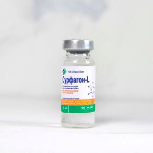 Сурфагон L 10 мл Ланс-Хім Сурфагон , гормональне лікарський засіб, що містить в 1 мл препарату 5 або 10 мкг сурфагону (аналог гонадотропін-рилізинг гормону люліберіну), а також хлорид натрію, нипагин і воду для інєкцій. Склад: Сурфагон , синтетичний нанапептид, аналогом гонадотропін-рилізинг гормону ЛГ-РГ-люліберіну. Випускають у вигляді стерильного розчину в 0,9 розчині хлориду натрію з консервантом нипагином. В 1 мл препарату містить 5 мкг діючої речовини. Флакони по 10 мл Фармакологічна дія: Сурфагон стимулює виділення гонадотропінів гіпофіза в кров з максимумом через 2 -3 години після введення. Підвищений вміст гонадотропінів у крові зберігається протягом 4-5 годин після введення. На відміну від природного люліберіну біологічна активність сурфагону в 50 разів вище, що дозволяє використовувати цей препарат у мікродозах і короткими курсами. Сурфагон більше повільно, ніж природний люлиберин руйнується під дією ферментів, що забезпечує його більш сильну біологічну дію на гонадотропну функцію гіпофіза. Протягом 3 годин після введення пептид розпадається на амінокислоти і виводиться з організму. Застосування: Сурфагон вводять внутрішньомязово. Для ранньої індукції статевого циклу пропонується два способи. При першому способі препарат рекомендується застосовувати корів після отелення, без осложненийв післяпологовий період. Сурфагон вводять одноразово на 5 - 15 дні після отелення в дозі 50 мкг. Тварини після введення препарату можуть приходити в охоту, але їх необхідно осіменяти не раніше ніж через 45дней після отелення. При другому способі препарат вводять одноразово на 8 - 10 днів після отелення в дозі 50 мкг, а на 18 - 20 день після отелення, незалежно від стану матки, необхідно ввести естрофан у дозі 250 мкг (2 мл) або 20 мг ензапроста і на 36 день 10 - 25 мкг сурфагону. У індуковану полювання осіменяти корів не рекомендується. Осіменіння необхідно проводити не раніше ніж через 45 днів після 1 отелення. Для лікування легкої форми гіпофункції яєчників сурфагон вводять дворазово перший раз на 8 - 12 дні статевого циклу в дозі 50 мкг, повторно через 10 днів у дозі 10 - 25 мкг. Для лікування більш вираженою форми гіпофункції яєчників на 1, 3 і 5 день вводять внутрішньомязово по 10 мл 1 масляного розчину прогестерону, а на 7-ий день вводять сурфагон в дозі 50 мкг. Тварин запліднюють за міру приходу в охоту. Для лікування фолікулярних кіст у корів рекомендується два способи лікування кіст, у звязку з тим, що сурфагон у корів викликає різкий підйом концентрації ЛГ в крові, або овуляцію кістозних фолікулів, або лютеонизацию. При першому способі препарат вводять три рази з інтервалом 24 години в дозі 25 мкг. На 11 день після першого введення сурфагону вводиться естрофан у дозі 2 мл (250 мкг) двічі з інтервалом 10 - 12 годин. По мірі приходу тварин в охоту їх осіменяють. При другому способі для стимуляції овуляції фолікулів яєчників сурфагон вводять у дозі 25 мкг на початку чергової полювання, а через 14-16 годин проводять осіменіння та повторно вводять 10 мкг сурфагону. Повторне осіменіння тварин проводять через 10-12 годин після першого осіменіння. З метою підвищення результативності осіменіння корів не пізніше 2 -4 годин від початку охоти вводять 10 мкг сурфагону, що призводить до овуляції предовуляторних фолікулів протягом 24 - 28 годин. Для зниження (попередження) ранньої ембріональної см