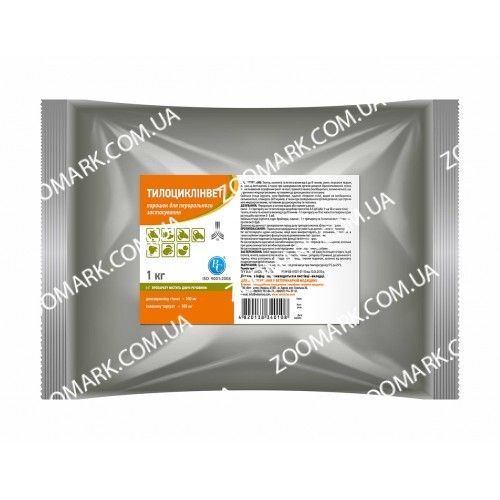 ОПИСПорошок від світло-жовтого до темно-жовтого кольору зі слабким специфічним запахом.СКЛАД1 г препарату містить діючоїречовини:доксицикліну гіклат 100,0мгтилозину тартрат 100,0мг.ФАРМАКОЛОГІЧНІ ВЛАСТИВОСТІАТС vet класифікаційний код QJ01 - антибактеріальні ветеринарні препарати для системного застосування. QJ01RA90 - Тетрацикліни, комбінації з іншими протимікробними препаратами.Тилоциклінвет - комбінований препарат, до складу якого входять доксицикліну гіклат і тилозину тартрат.Доксициклін - бактеріостатичний антибіотик, належить до групи тетрациклінів. Діє на рибосоми бактерій, перешкоджаючи білковому синтезу. Він характеризується широким спектром антимікробної дії проти грампозитивних і грамнегативних бактерій (Staphylococcus spp., Diplococcus pneumoniaе, Streptococcus spp., Haemophilus influenzae, E. coli, Pneumococcus spp., Bacillus anthracis, Clostridium tetani, Clostridium perfringes, Listeria monocytogens, Actinomyces spp., Enterobacter spp., Klebsiella spp., Salmonella spp., Shigella spp., Yersinia spp.), а також мікоплазм (Mycoplasma spp.), рикетсій (Rickettsia spp.) і хламідій (Chlamydia spp.).Тилозин - антибіотик групи макролідів, активний проти грамнегативних і грампозитивних мікроорганізмів (Staphylococcus spp., Streptococcus spp., Diplococcus spp., Corynebacterium spp., Clostridium spp., Erysipelothrix rhusiopathiae, Neisseria spp., Bacteriodes nodosus, Moraxella bovis, Pasteurella spp., Spirochaetes spp.). Особливо чутливі до тилозину мікоплазми (Mycoplasma gallisepticum, M. hyopneumoniae, M. synoviae, M. meleagridis, M. agalactiae, M. bovigenitalium), а також хламідії (Chlamydia spp.) і рикетсії (Rickettsia spp.). Механізм дії тилозину полягає в блокуванні синтезу білків в бактеріальній клітині шляхом утворення комплексу з 5ОS-субодиницями рибосом.Після прийому всередину доксициклін добре всмоктується з травного тракту. Широко розподіляється в тканинах і рідинах організму. Половина дози абсорбується за 50 хвилин. При застосуванні препарату разом з кормом, наявність останнього в кишківнику зменшує біодоступність на 20. Період напіввиведення препарату становить близько 10-12 годин - у собак, 4,3-9,7 годин - у великої рогатої худоби, 10,5 годин - у коней, 6,7 годин - у свиней, 3,6 годин - у овець. Доксициклін проникає практично в усі органи і тканини, але найбільший його рівень спостерігається в легенях, печінці, жовчі, репродуктивних органах і нирках. У низьких концентраціях доксициклін виявляється в цереброспинальній рідині, але його концентрація не досягає терапевтичного рівня. Максимальна концентрація в крові спостерігається через 2-4 години, а терапевтична концентрація утримується протягом 18-24 годин. Виводиться доксициклін з організму, в основному, з жовчю.Максимальна концентрація тилозина в сироватці крові спостерігається через годину після застосування. Терапевтична концентрація зберігається в організмі від 10 до 12 годин. Тилозин проникає практично в усі органи і тканини, але його найвищий рівень спостерігається в легенях, печінці, молочних залозах і нирках. Виводиться з організму в незміненому вигляді, в основному, з жовчю і частково з сечею і молоком.ПОКАЗАННЯ ДО ЗАСТОСУВАННЯТелята, козенята і ягнята у віці від 4 до 8 тижнів, свині: лікування тварин, хворих на септицемію, а також при захворюваннях органів дихання (бронхопневмонія, ензоотична пневмонія, атрофічний риніт та інші), травного тракту (колібацильоз, сальмонельоз), які викликані мікроорганізмами, чутливими до доксицикліну та тилозину.Домашня птиця (курчата, кури-бройлери, індики): лікування птиці, хворої на колібацильоз, сальмонельоз, хламідіоз, септіцімію, а також пр
