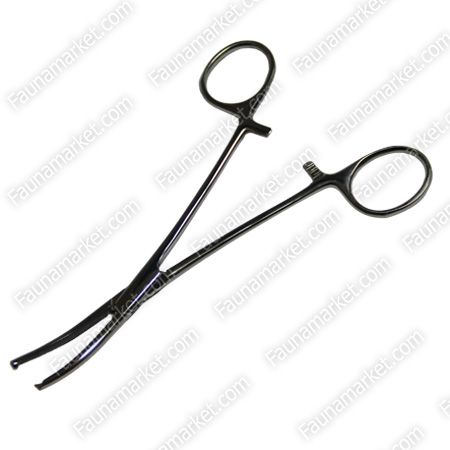 Затискач Кохера вигнутий кровоспинний 160 мм.Опис:Затискач кровоспинний, 1х2-зубий зубчастий, вигнутий, No2 160 мм, аналог російського (С-5-1).Затискач Кохера має на захоплюючих поверхнях зубчики, що травмує тканини, але захоплює їх міцно.Матеріал:Хромована нержавіюча сталь.Вид тварин:Для худоби,кішок, собакПараметри:16 см.