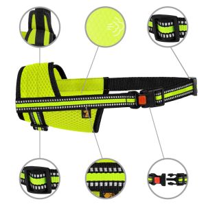 Намордник для собак Bronzedog Mesh дихаючий регульований виконаний з 3D сітки Premium якості і нейлону з рефлекторної вставкою товщиною 2мм. Укомплектований пластикової пряжкою з фіксатором, що дозволяє його легко надягати і знімати. Підходять для представників усіх порід собак, що мають спокійний, врівноважений характер і темперамент. Можна використовувати для привчання собак до наморднику. Ідеальний під час перевезення собак і відвідування ветеринара. Намордник доступний в трьох розмірах і в трьох кольорах.