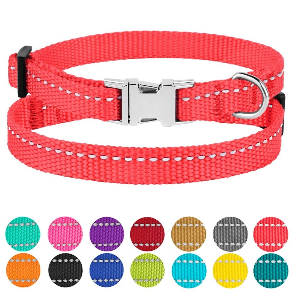 Нейлоновий нашийник зі світловідбиттям для собак дрібних порід ТМ BronzeDog легкий, міцний та надійний. Він виконаний із матеріалів найвищої якості. Високоміцний нейлон, з якого виготовлений нашийник, не втрачає колір при пранні та не вигоряє на сонці. Нашийник виконаний з вплетенням світловідбиваючої нитки та укомплектований міцною металевою пряжкою. Цей нашийник мякий на дотик, гнучкий, не боїться води, практичний і невибагливий у догляді.