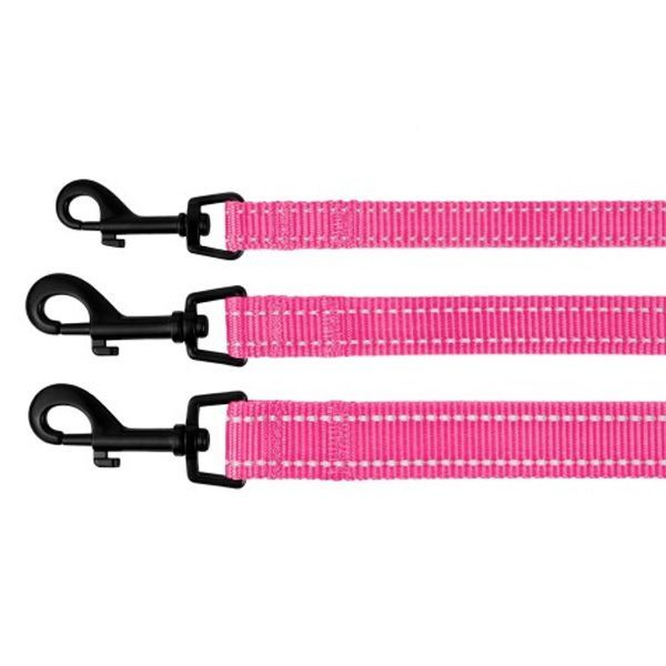 Повідець ACTIVE для собак зі світловідбиттям нейлоновий Рожевий ширина 25мм довжина 152см