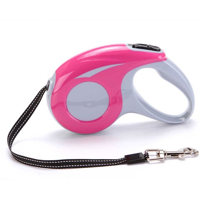 Рулетка для собак 3м12кг блискавка пластикова ручка стрічка рожева фіксатор XS-208-3м