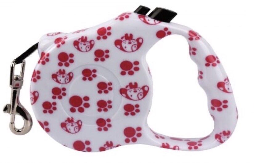 Рулетка для собак - 3м12кг, малюнок лапка, пластикова ручка з кнопкою для легкого зупинення та відпускання стрічки.