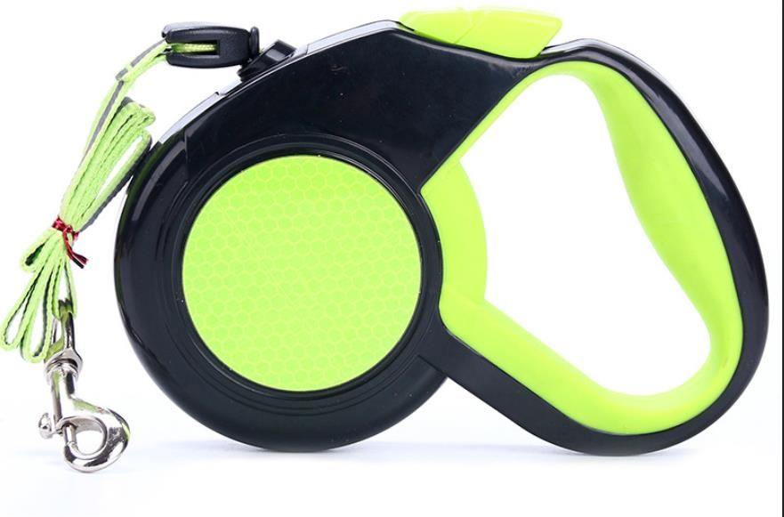 Рулетка для собак 5м 20кг світловідбиваюча прогумована ручка трос салатова з кнопкою LS172