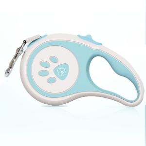Рулетка для собак 5м 30 кг лапка гумова ручка стрічка з фіксатором Блакитний