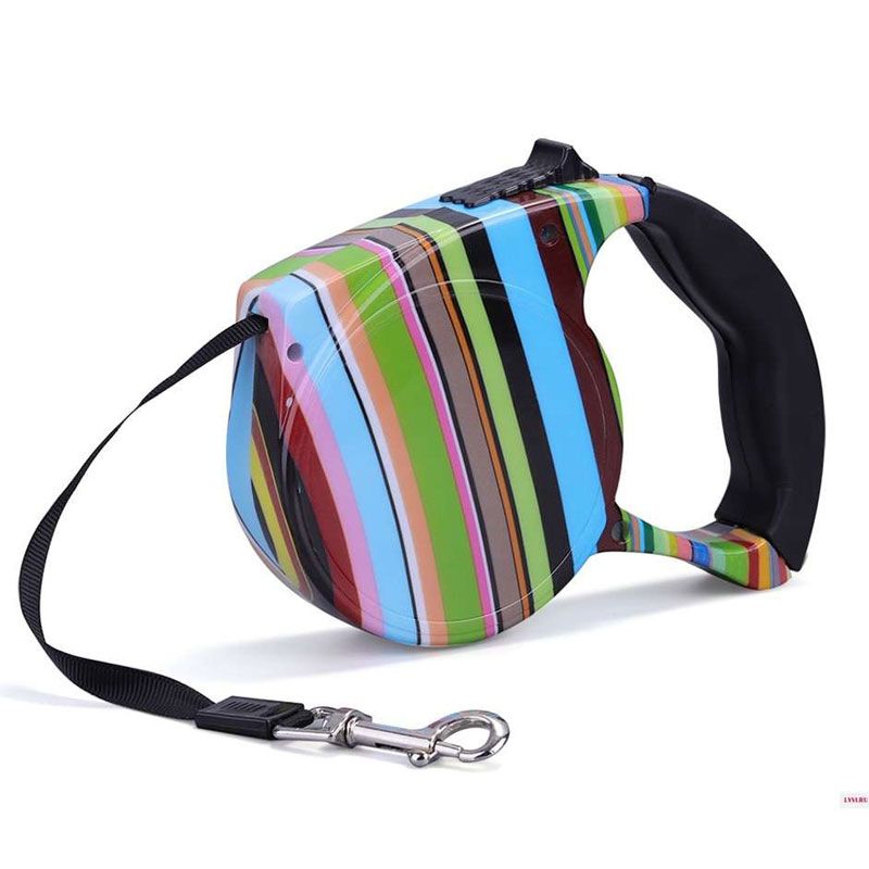 Рулетка для собак 5м15кг з гумовою ручкою стрічка фіксатор Веселка