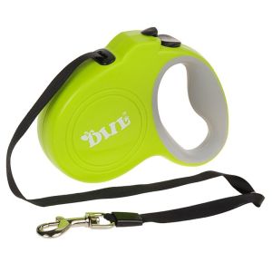 Рулетка для собак DIIL, 4м20кг, гумова ручка з кнопкою для легкого зупинення та відпускання стрічки. Максимальне навантаження: 20 кг. Матеріал стрічки: нейлон. Максимальна довжина: 4 метри. Модель: LS133.