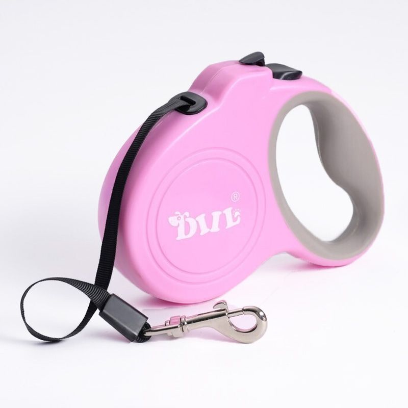 Рулетка для собак DIIL 4м 20кг гумова ручка стрічка з кнопкою LS133 Трояндовий