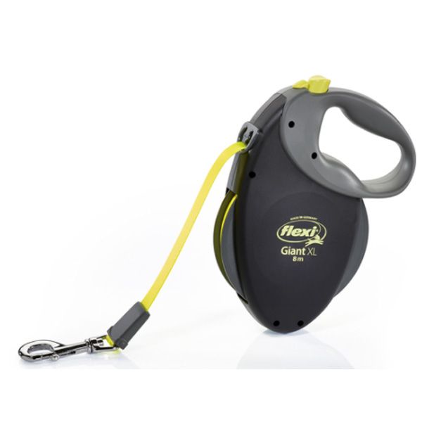 Поводок-рулетка Flexi Giant XL - Рулетка з посиленим корпусом для собак особливо великих порід - Високоякісна мяка прогумована ручка, що забезпечує комфорт користування рулеткою - Запатентована високотехнологічна пружинна система, що гарантує довговічність служби рулетки - Спеціальні запатентовані деталі, що забезпечують плавний хід і надійну фіксацію повідця - Стрічковий поводок довжиною 8 метрів, що дозволяє надати собаку на повідку в рівній мірі свободу і безпеку - Спеціальне пристосування, що не дозволяє стрічці заплутуватися при вході в корпус рулетки - Зручне розміщення кнопки гальмування, що дозволяє керувати довжиною повідця однією рукою Характеристики товару: - стрічка довжиною 8 метрів - розрахований на вагу собаки до 75 кг - хромований карабін - вага повідця без додаткових аксесуарів 860 р Виробник:Flexi, Німеччина Подивитися всі рулетки для собак