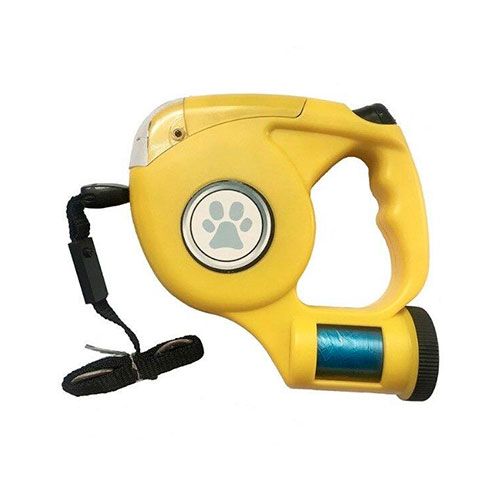 Рулетка для собак з жовтим корпусом:Тип: Рулетка з ліхтариком і пакетами для фекалійДовжина: 5 метрівМаксимальне навантаження: до 35 кілограмКорпус: ЖовтийЦя рулетка має вбудований ліхтарик і додатковий контейнер для пакетиків для фекалій, що робить її зручною для прогулянок з вашим улюбленцем у вечірній час та під час прибирання за ним.