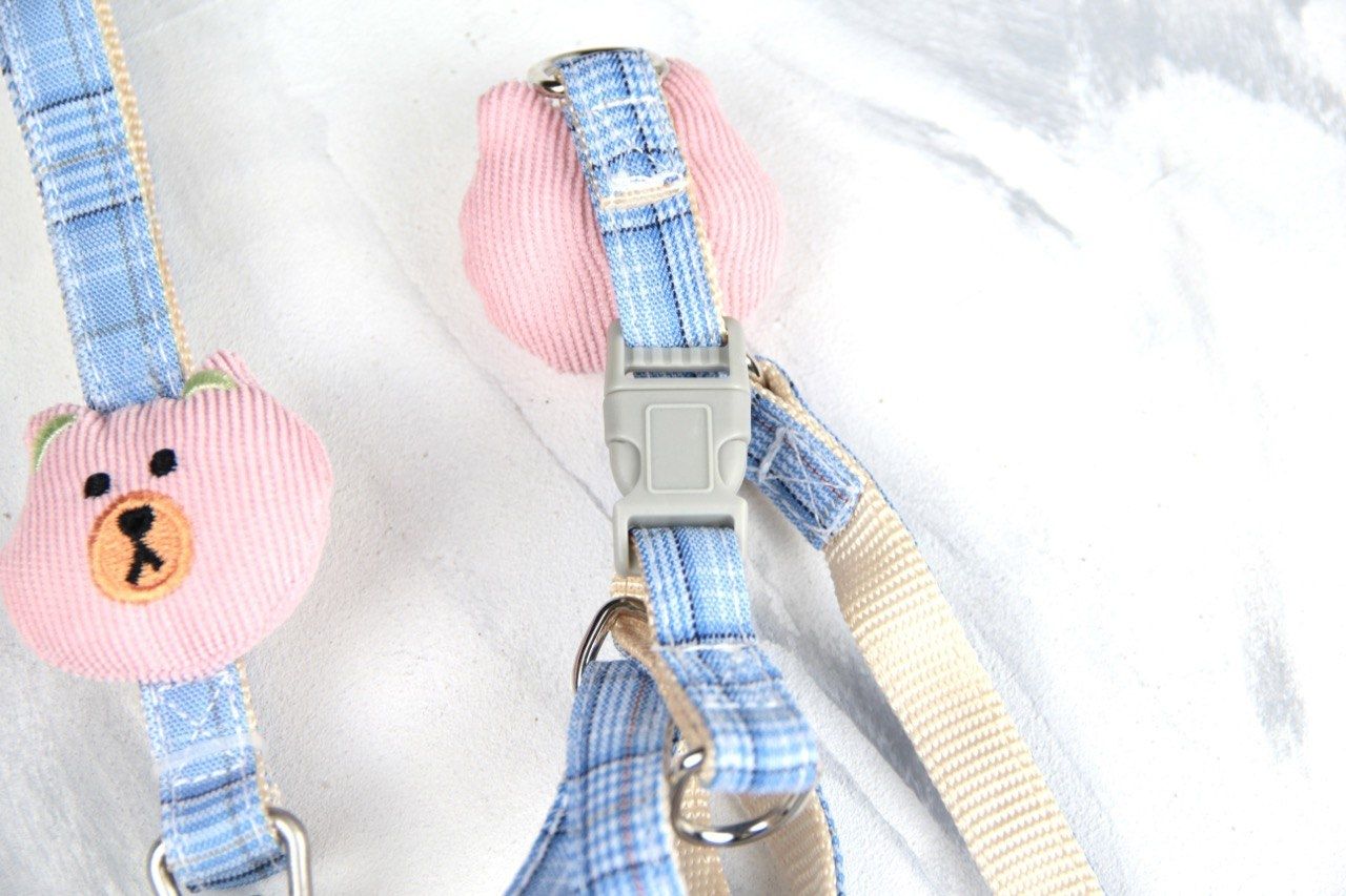Комплект Собачки - ідеальний вибір для цуценят і дрібних собак. Блакитний колір шлеї з повідцем додає ніжності та стильності. Цей комплект виготовлений з увагою до комфорту вашого пухнастого друга, забезпечуючи безпечні та радісні прогулянки разом. Так ви зможете насолоджуватися спільними моментами та створити лише позитивні спогади про прогулянки з вашим улюбленцем.Довжина повідця 120 см