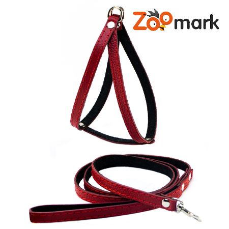Набір шлейка човник з шкіряним повідцем строчений з підкладом Червоний