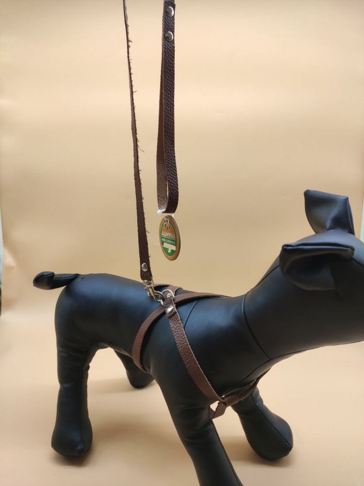 Шлейка вісімка з повідцем шкіра не строчений набір Фауна 103020-2 Коричневий