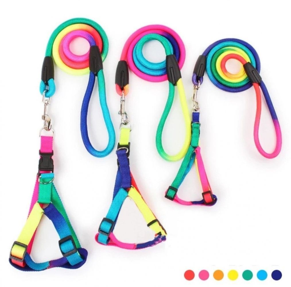 Шлея і повідець комплект 2,013-20100 круглий шнур, ручка петля кольором веселки